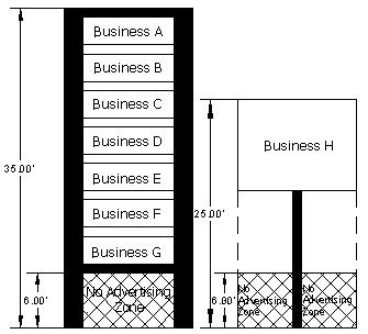 Commercial lots that have multiple businesses may exceed the maximum allowable freestanding sign height, based on the linear feet of street frontage (a, b, or c above), two feet per additional business. The maximum allowable height of the freestanding sign for commercial lots with multiple businesses shall not exceed 35 feet.