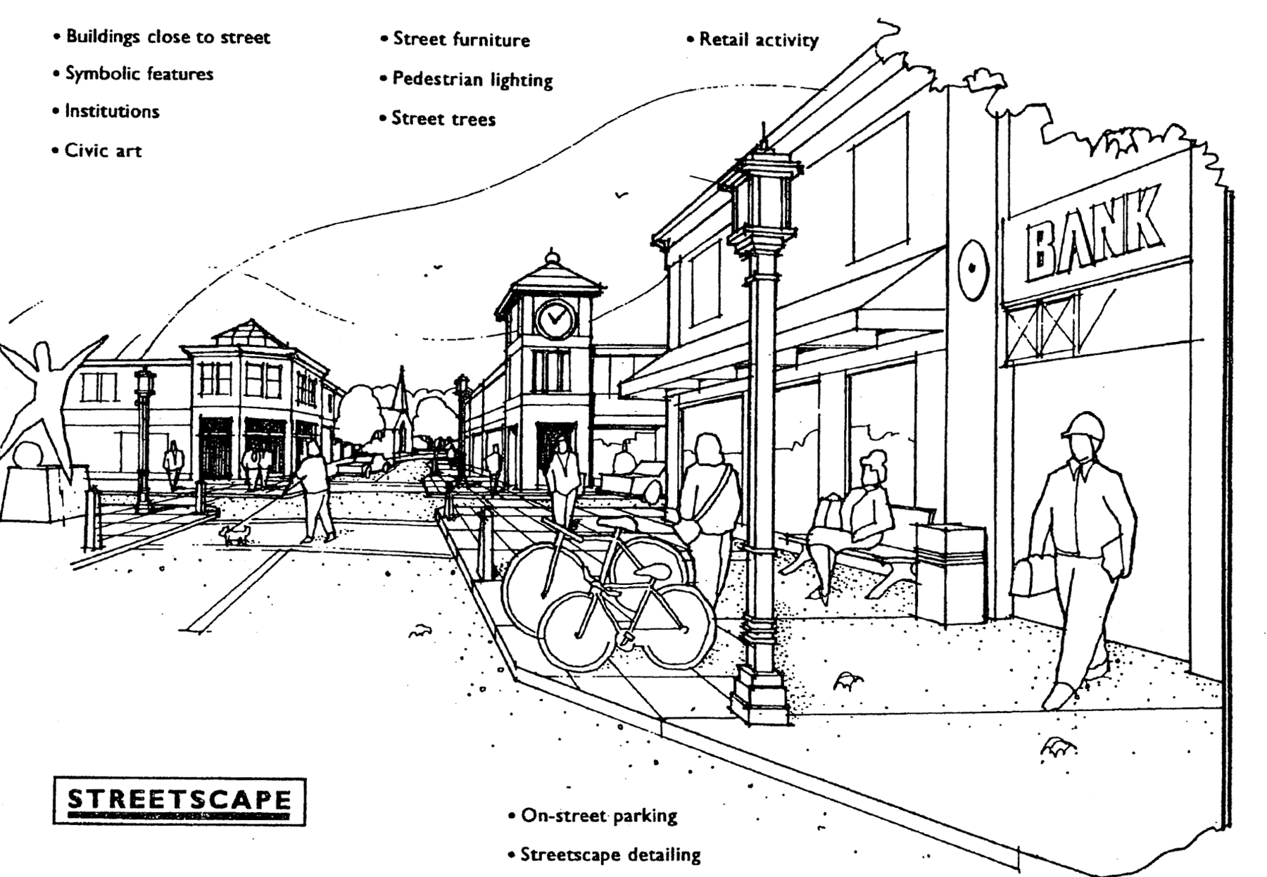 A landscaping plan shall be drawn to scale, include dimensions and distances, and clearly delineate all existing and proposed vehicular movement and parking, and the location, size and description of all landscaping materials. All easements, transition buffer areas and setback areas shall be labeled and dimensioned. Outdoor furniture and fixtures for commercial and mixed-use development are encouraged and shall be considered part of the landscaping plan and identified on the landscape plan.