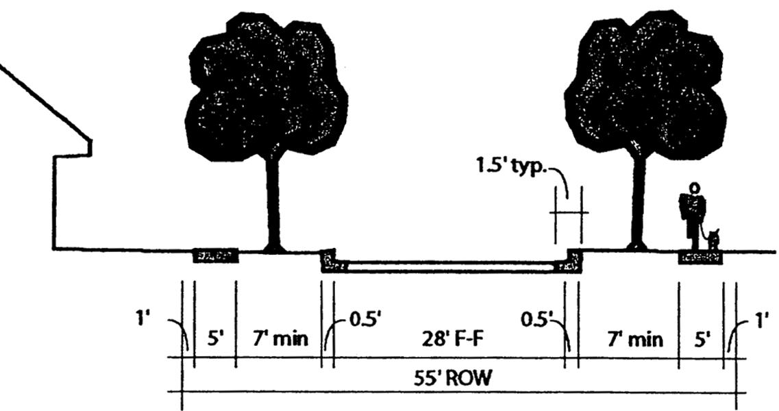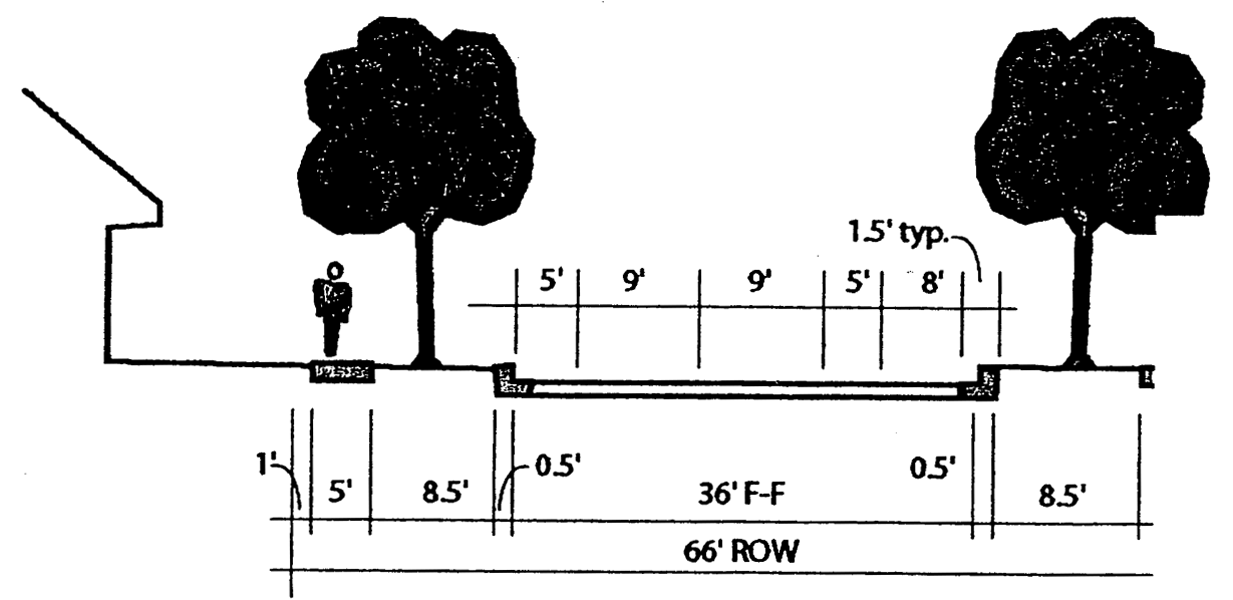 Major internal circulation roadways must be separated from parking areas using curb and gutter, landscaping, pedestrian walkways, and lighting.