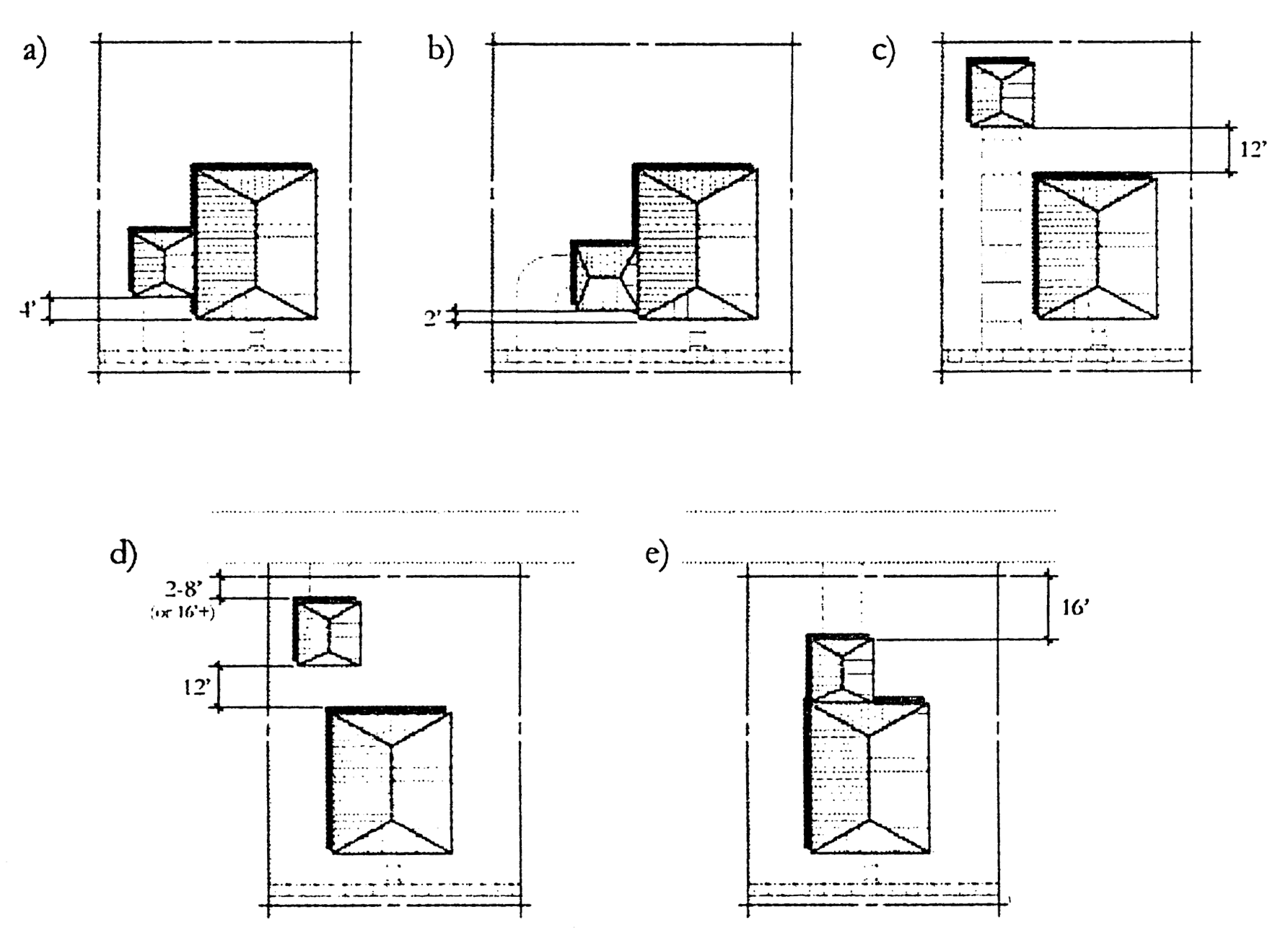 Minimum distance of ten feet from unrelated accessory structures.