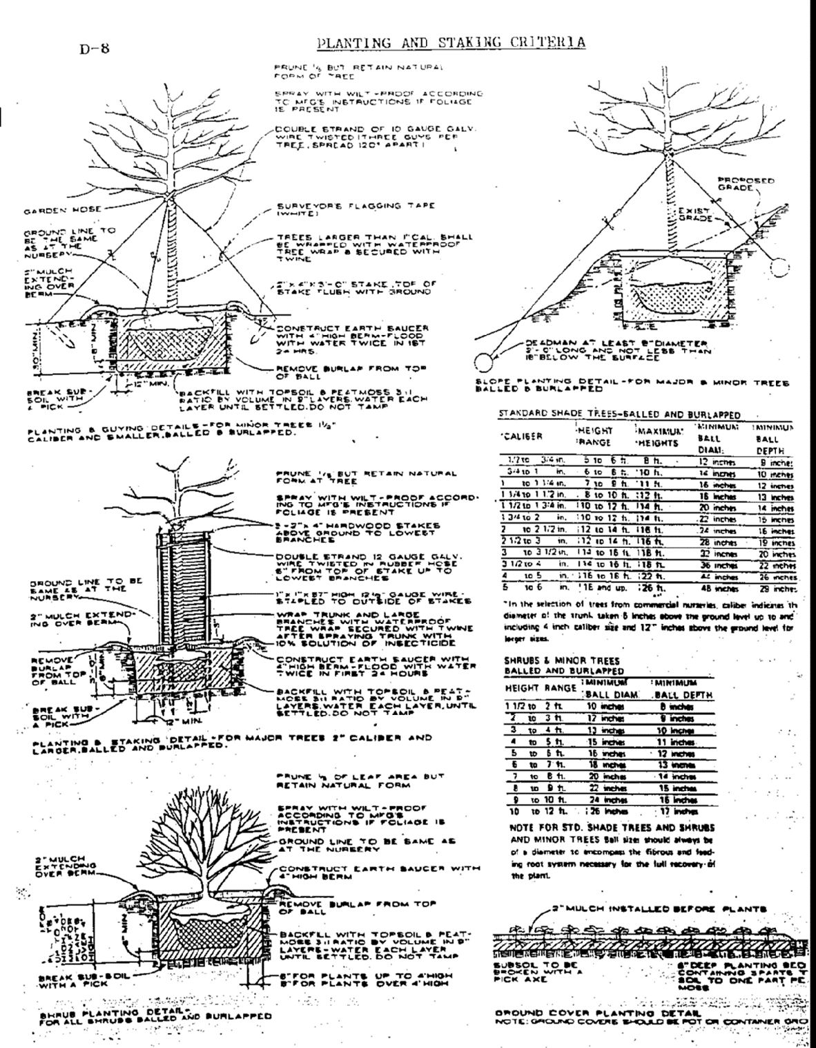The trees recommended in section D-7 have minimal maintenance requirements. However, all trees must receive a certain degree of care, especially during and immediately after planting. In order to protect an investment in new trees, the developer and his or her agent must follow these guidelines when planting: