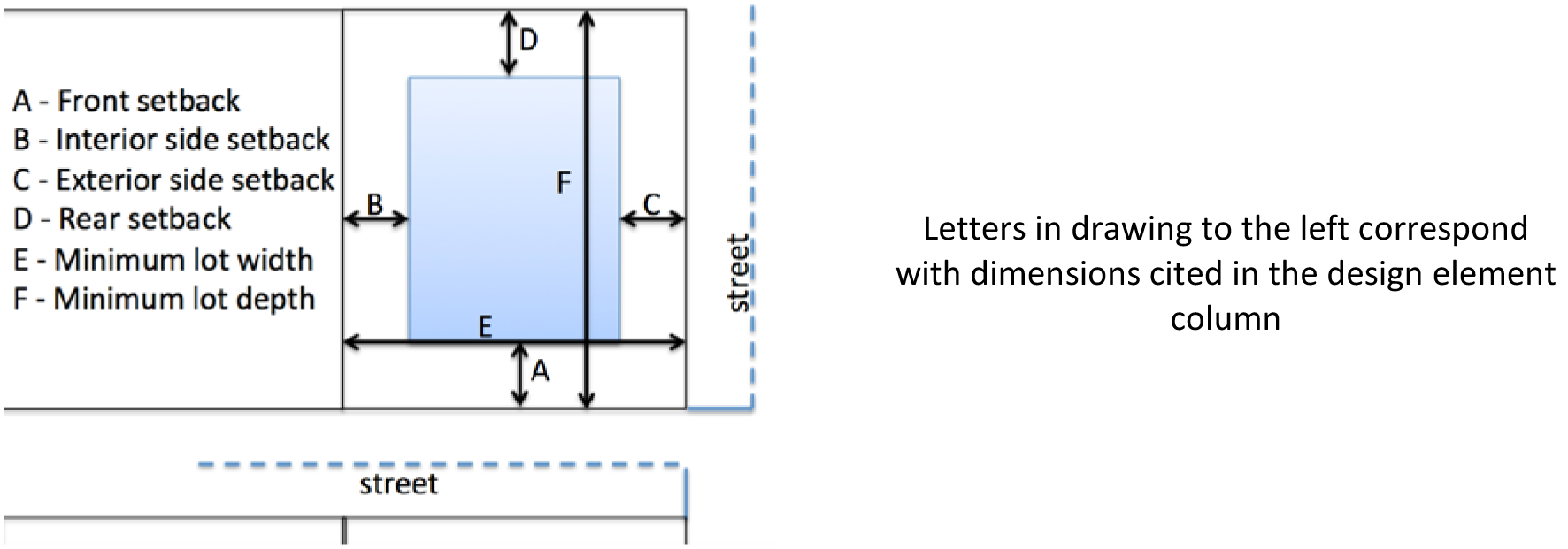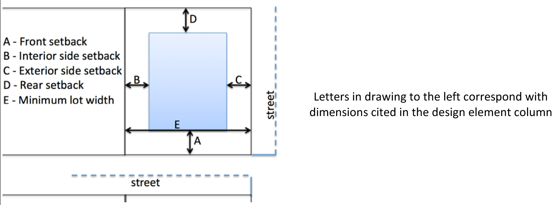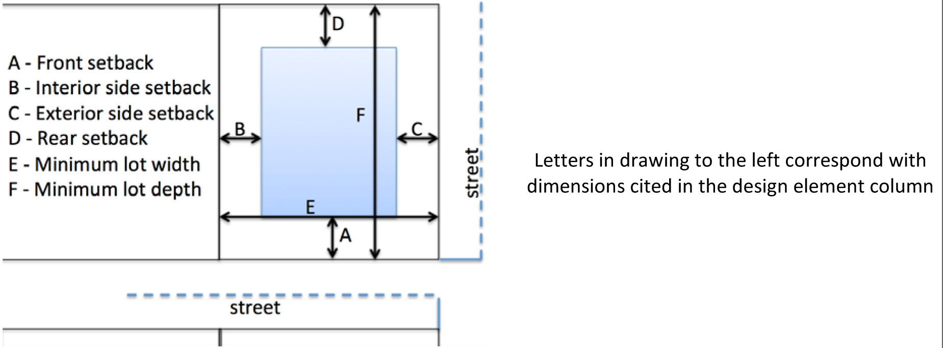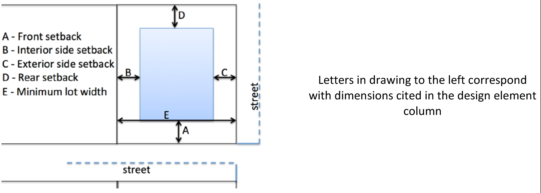 Semi-detached or Detached Dwellings. For semi-detached or detached dwellings, the minimum lot area shall be 4,000 square feet and the minimum lot width shall be 30 feet. The minimum side setback shall be five feet except that there is no minimum side setback required along the party wall between adjoining units (see illustration below). Semi-detached or detached dwellings located on lots less than 8,000 square feet are not permitted accessory units.