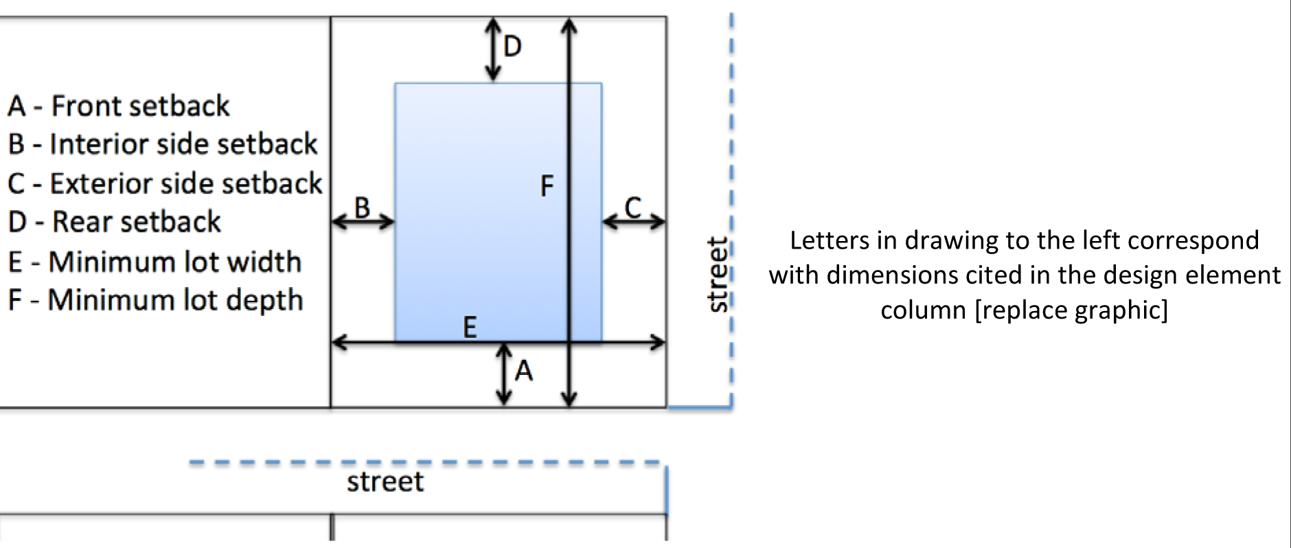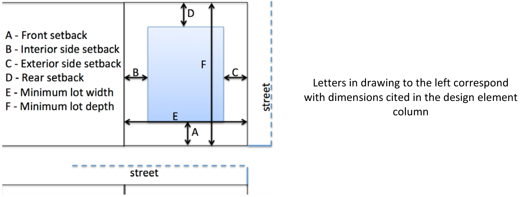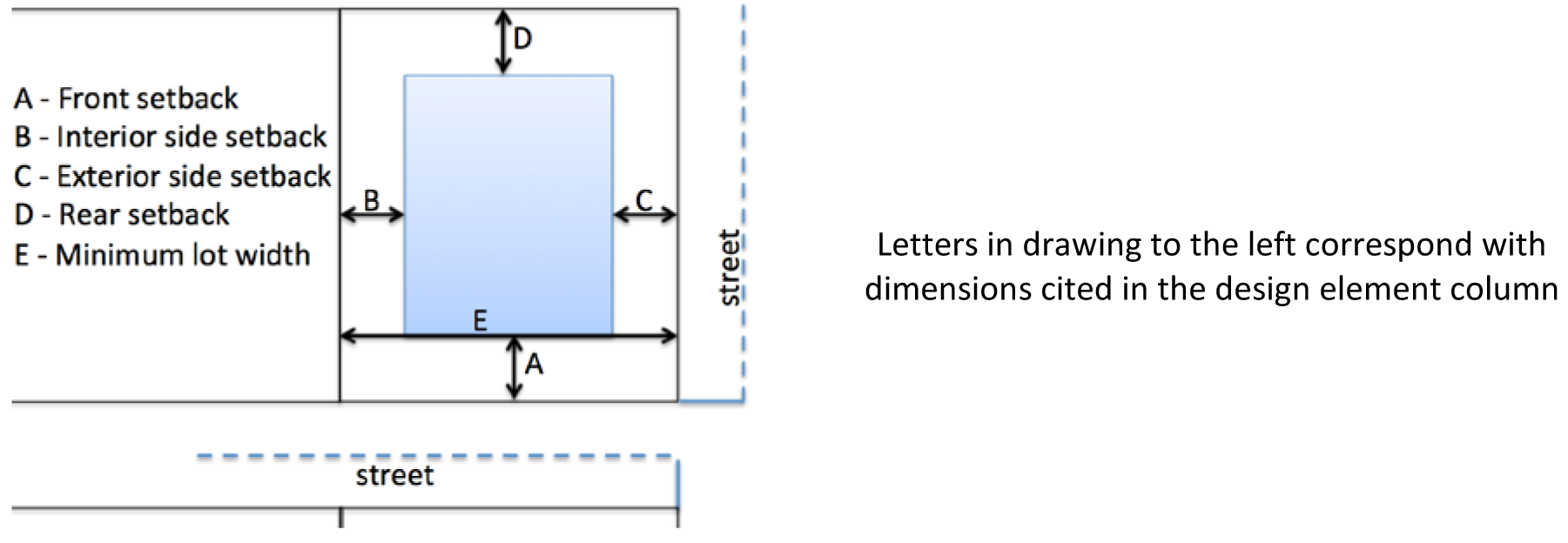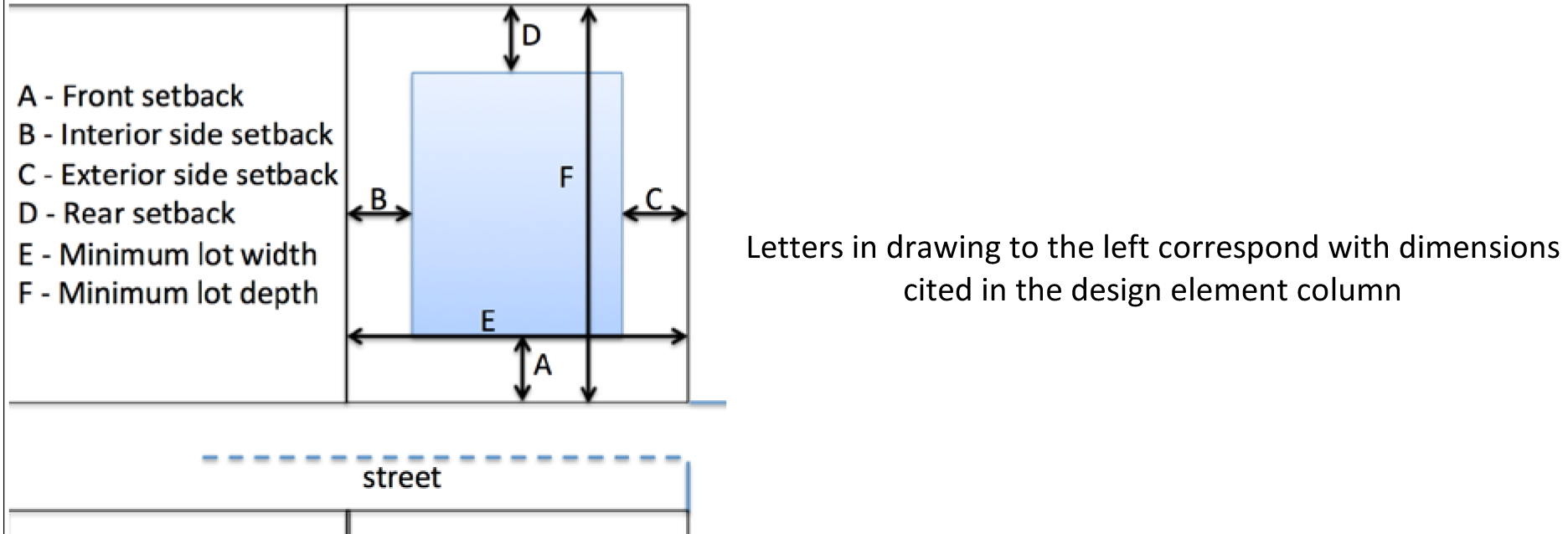 Semi-detached or Detached Dwellings. For semi-detached or detached dwellings, the minimum lot area shall be 4,000 square feet and the minimum lot width shall be 30 feet. The minimum side setback shall be five feet except that there is no minimum side setback required along the party wall between adjoining units (see illustration below). Semi-detached or detached dwellings located on lots less than 8,000 square feet are not permitted accessory units.