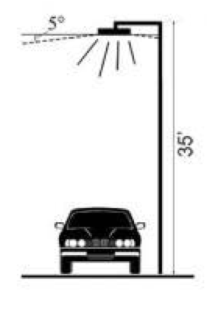 Lights shall be shielded so they do not radiate above five degrees below horizontal as shown to the right; and