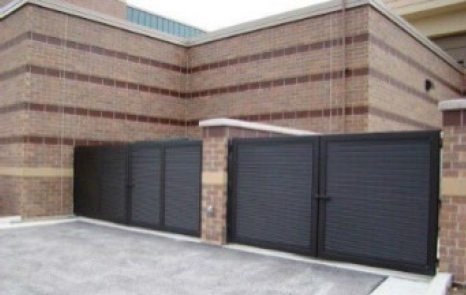 All refuse containment areas shall be located to the rear of buildings (where practical) and be provided with solid access doors or gates equipped with self-closing mechanisms. (See Figure 6).