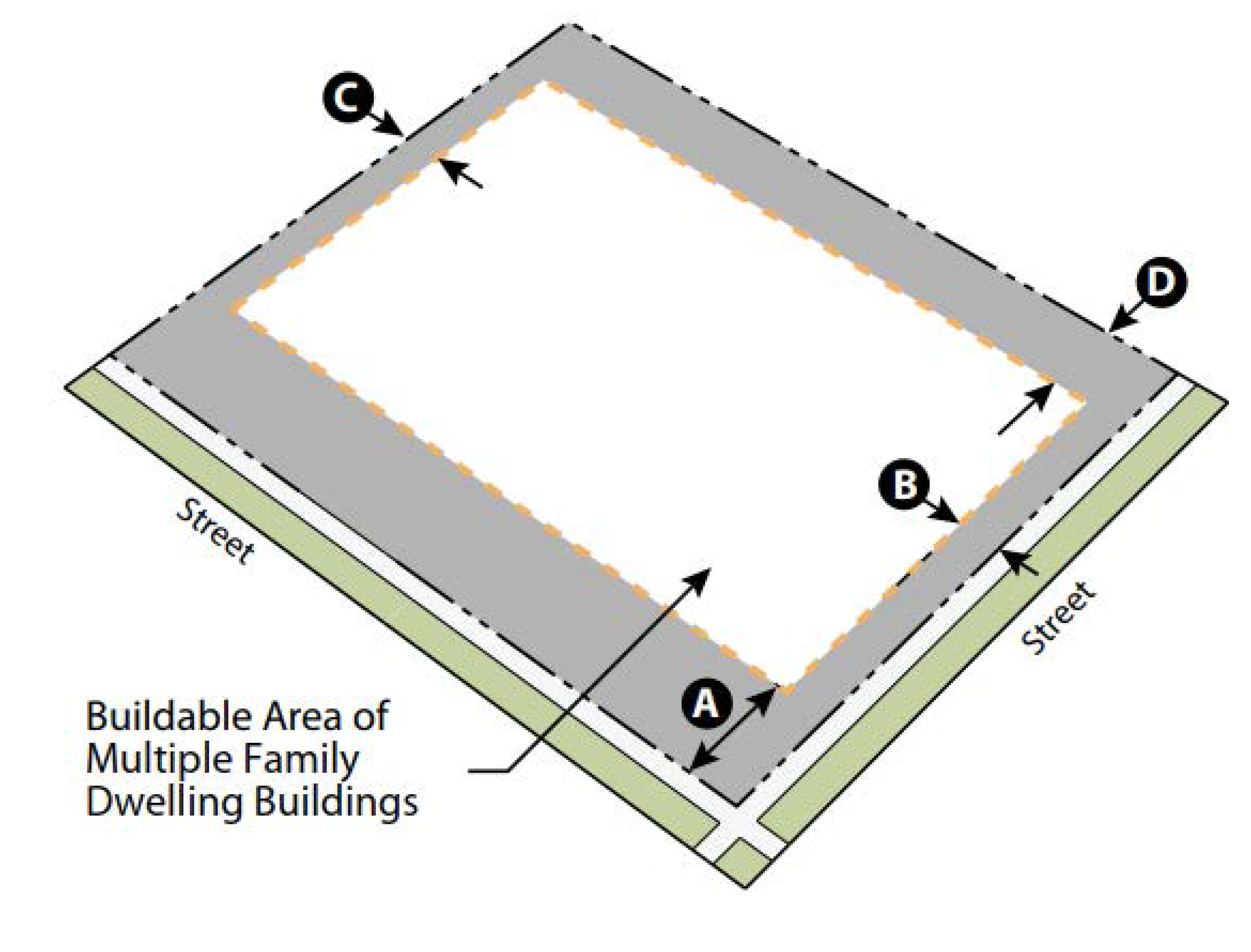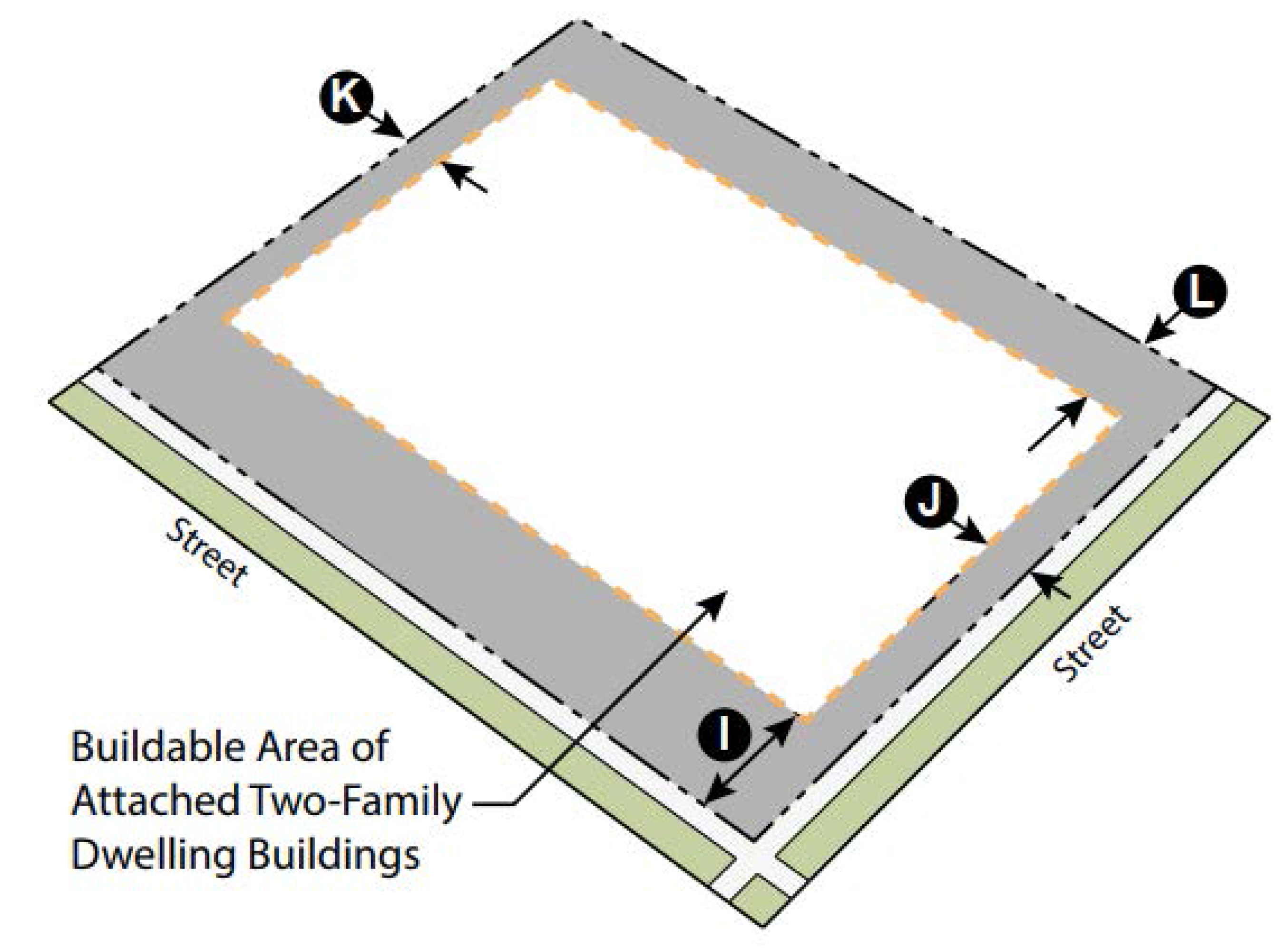 Figure 6. Neighborhood General Attached Two-Family Dwelling Building Placement Requirements.