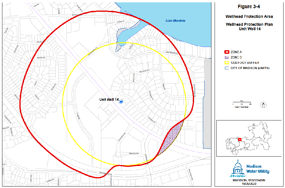 The location of Well No. 14 and the surrounding Zone A and Zone B are shown in Sec. 28.102(13)(a).