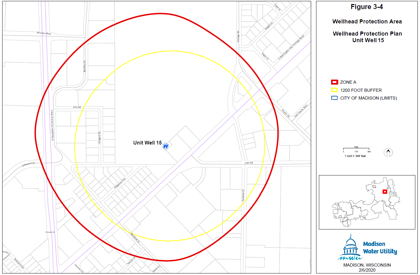 The location of Well No. 15 and the surrounding Zone A and Zone B are shown in Sec. 28.102(14)(a).