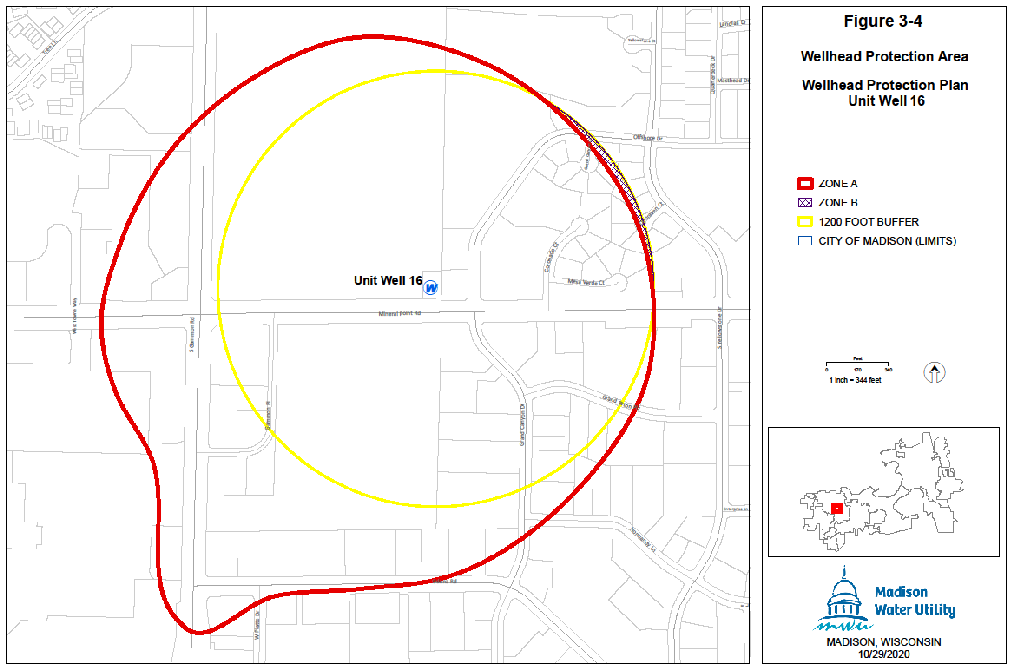 The location of Well No. 16 and the surrounding Zone A and Zone B are shown in Sec. 28.102(15)(a).