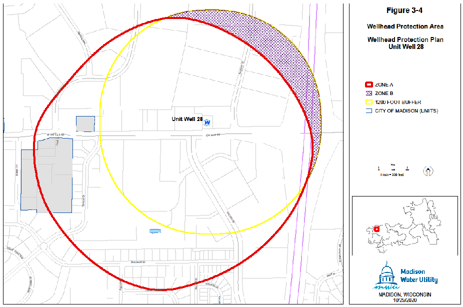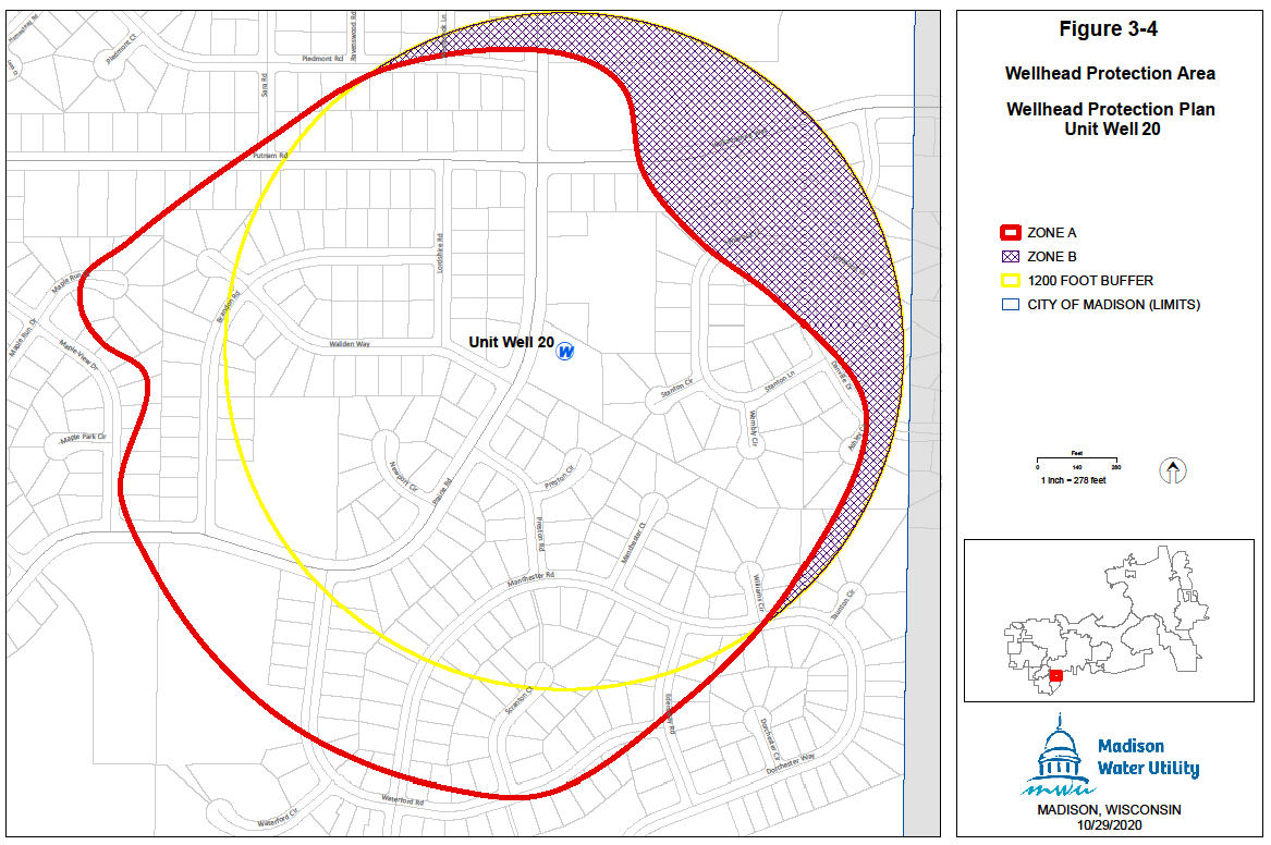 The location of Well No. 20 and the surrounding Zone A and Zone B are shown in Sec. 28.102(19)(a).