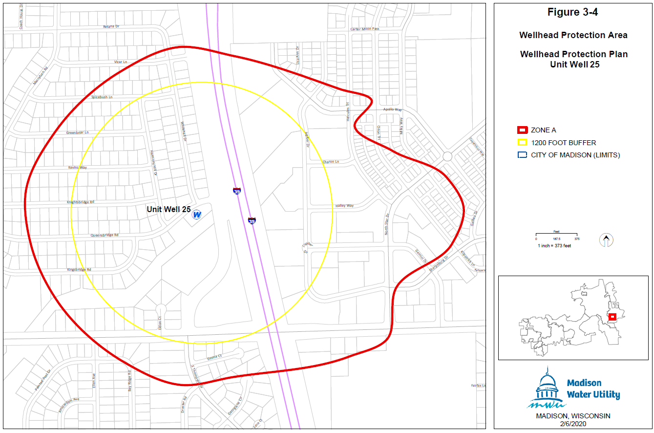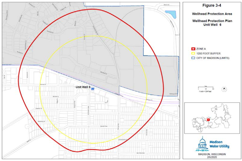 The location of Well No. 6 and the surrounding Zone A and Zone B are shown in Sec. 28.102(5)(a).