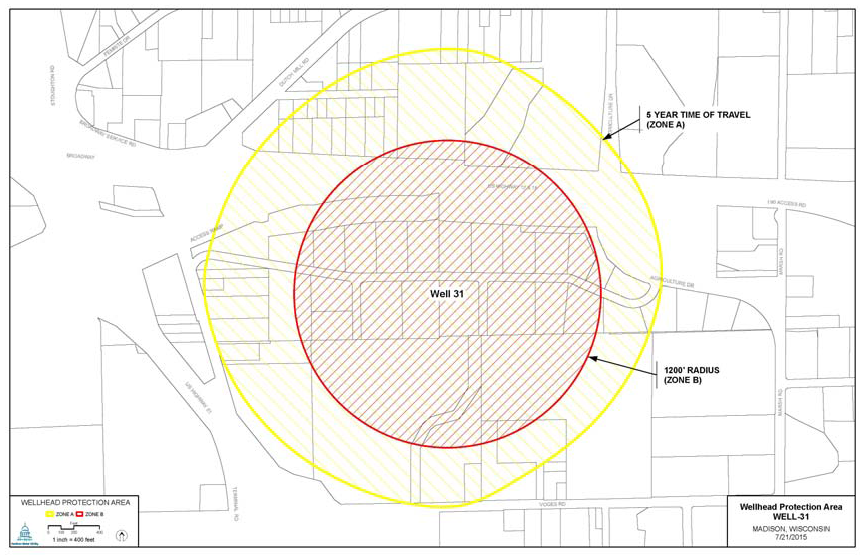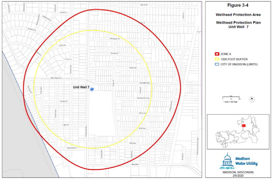 The location of Well No. 7 and the surrounding Zone A and Zone B are shown in Sec. 28.102(6)(a).
