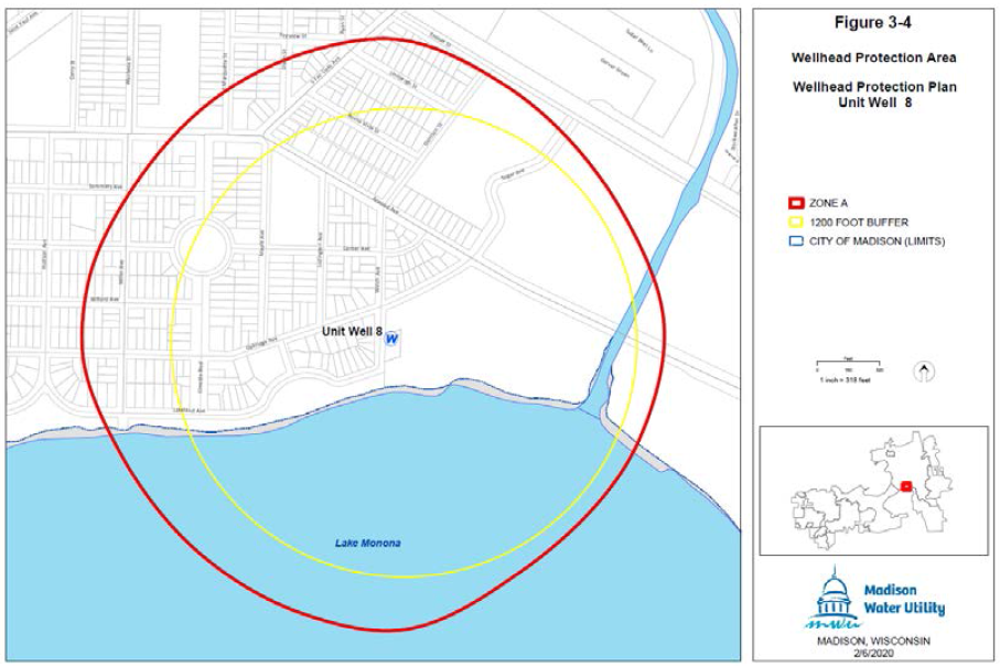 The location of Well No. 8 and the surrounding Zone A and Zone B are shown in Sec. 28.102(7)(a).