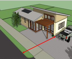 A right-of-way is not always at the edge of a sidewalk and or roadway. Where no right-of-way exists or if the right-of-way is only inclusive of the street pavement then the front setback shall be measured from an assumed right-of-way line that is parallel to the edge of pavement and setback a minimum of 10 feet from the edge of the pavement. This calculation is for setback calculation purposes only and does not represent any expressed or implied taking of property. A stamped survey should be provided before any development occurs in order to determine exactly where the property lines are located.