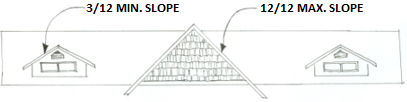 Pitched roof. The external covering of a building having a slope greater than 2(v):12(h). Roof area. A single, unbroken, contiguous plane measured perpendicular to slope.