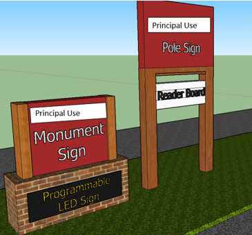 To calculate the area of any sign, measurements of the height and width of the signage, as defined herein, are multiplied to determine square footage. Additional advertisement areas such as programmable LED displays, marquees, or reader boards are included within the total sign area calculation, using the prescribed method.