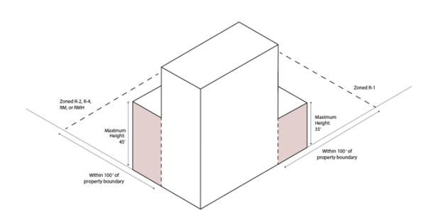 Exceptions to the building heights specified in Table 19.34.040 apply, in accordance with Section 19.46.110.