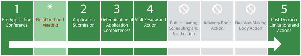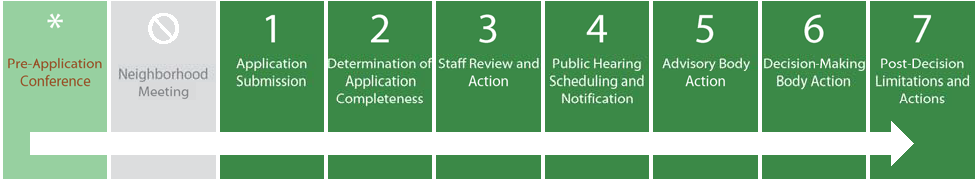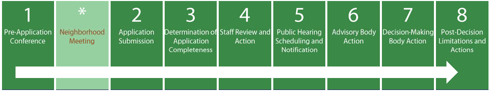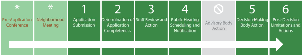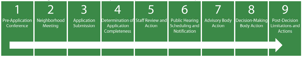 Table 2.2: Summary Table of Development Review Responsibilities, identifies the various development approvals and permits authorized by this LDC and indicates the role of City boards and staff in making recommendations or decisions on applications for each type of development approval or permit. It also identifies those applications that require a public hearing, and notes whether an informational meeting or pre-application neighborhood meeting is required.