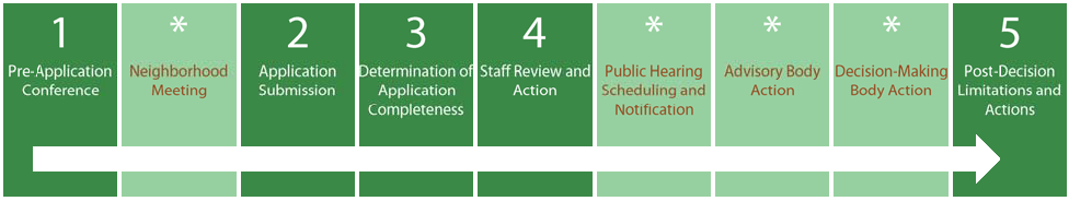Section 2.5, Application-Specific Review Procedures and Decision Standards. Section 2.5, Application-Specific Review Procedures and Decision Standards, contains specific information for each type of development application, including applicable additions or modifications to the standard review procedures, and the review standards for making a decision on the application.