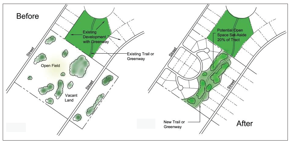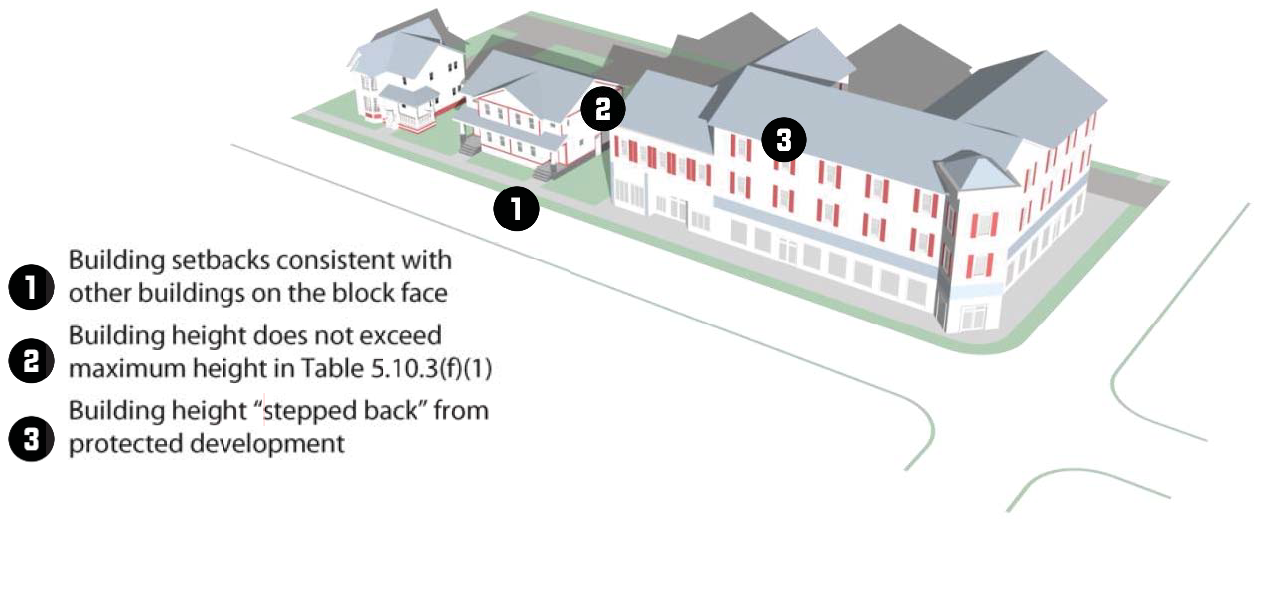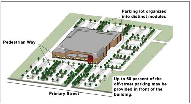 To achieve comprehensive development plan policies of supporting development and redevelopment of the Downtown, redevelopment of office and mixed use development on the West Side, accommodating infill development that is consistent with the community's desired character, and avoiding excessive paved surface areas.