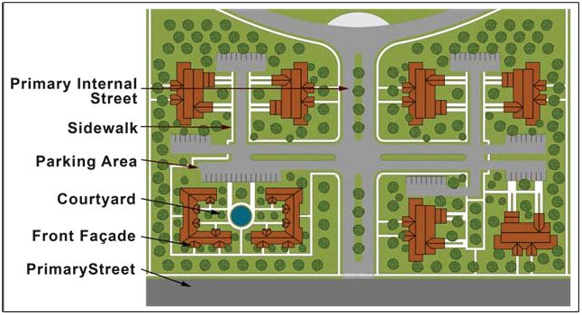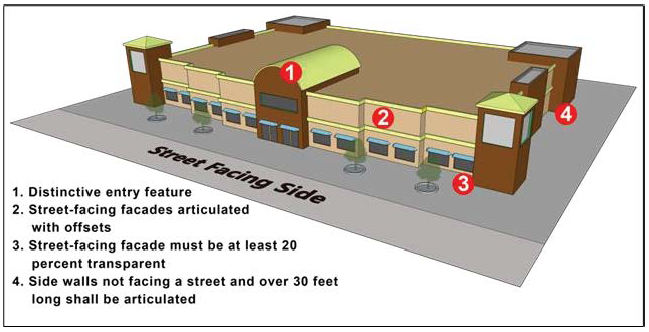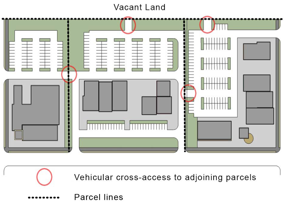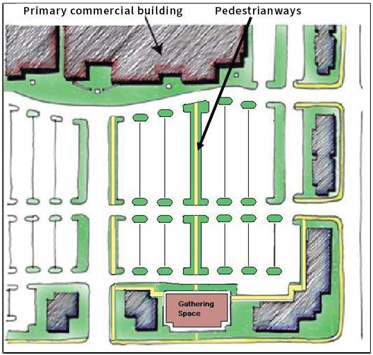 Buildings, parking and loading areas, landscaping, and open spaces shall be designed so that pedestrians moving from parking areas to buildings and between buildings are minimally exposed to vehicular traffic.