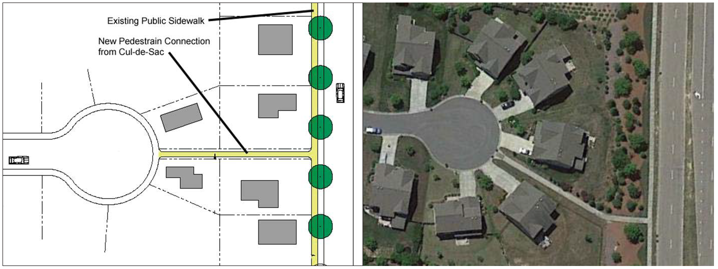 Landscaped, paved, and gradually inclined or flat pedestrian walks shall be provided along the lines of the most intense use, particularly from building entrances to streets, parking areas, and adjacent buildings. Pedestrian walks should be designed to discourage incursions into landscaped areas except at designated crossings.