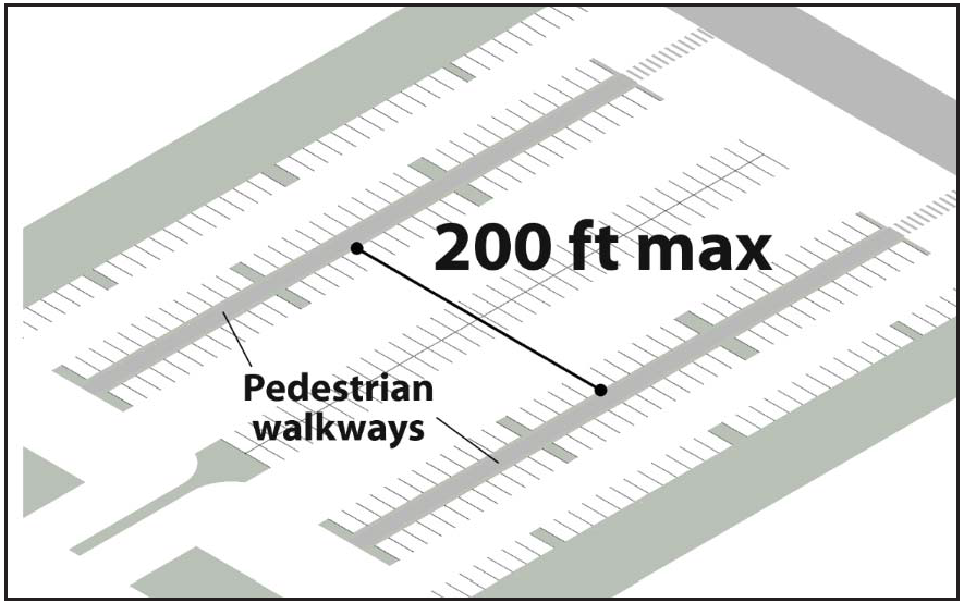 To ensure that off-street parking and loading areas do not encroach on or interfere with the public use of streets and alleys by pedestrians and provide for safe passage of pedestrians through the lot.
