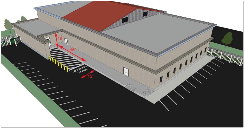 Off-street loading areas shall be arranged so no loading berth extends into the required aisle of a parking lot or pedestrian walkway or over a water meter.
