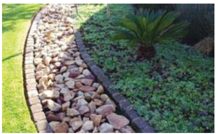 Includes plastic/PVC landscaping or similar materials to serve as borders for any loose material; and