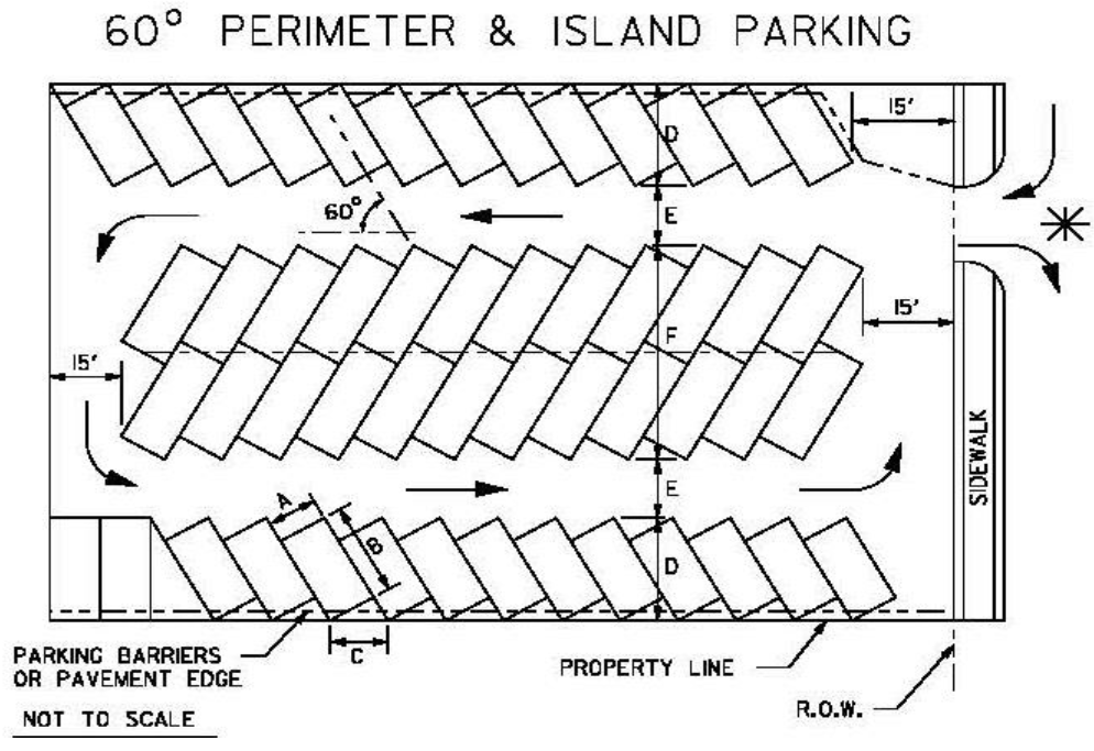 Parking locations and spaces shall be designed to ensure that vehicles do not encroach into a public sidewalk.