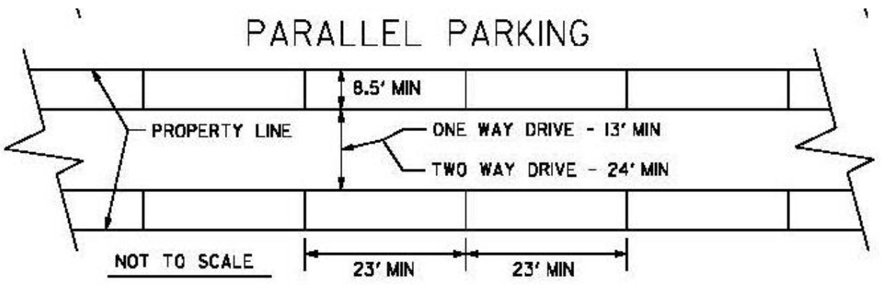 Each off-street parking space shall consist of an open area measuring at least nine (9) feet wide by twenty (20) feet long and seven (7) feet high; provided, however, that parallel parking spaces shall measure at least eight and one-half (8.5) feet wide by twenty-three (23) feet long and seven (7) feet high.