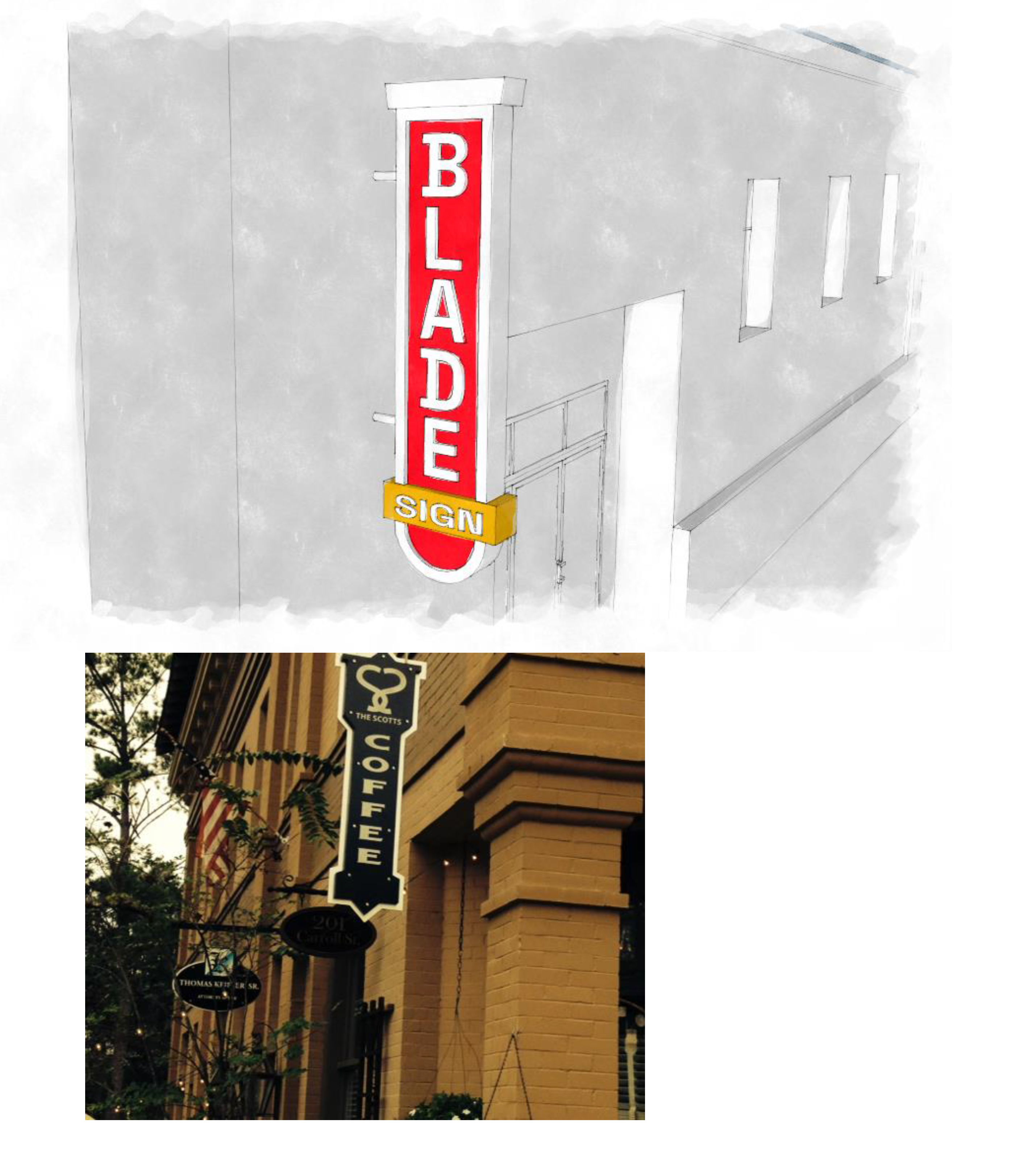 Signs should use material and colors that complement the primary building color and overall streetscape;