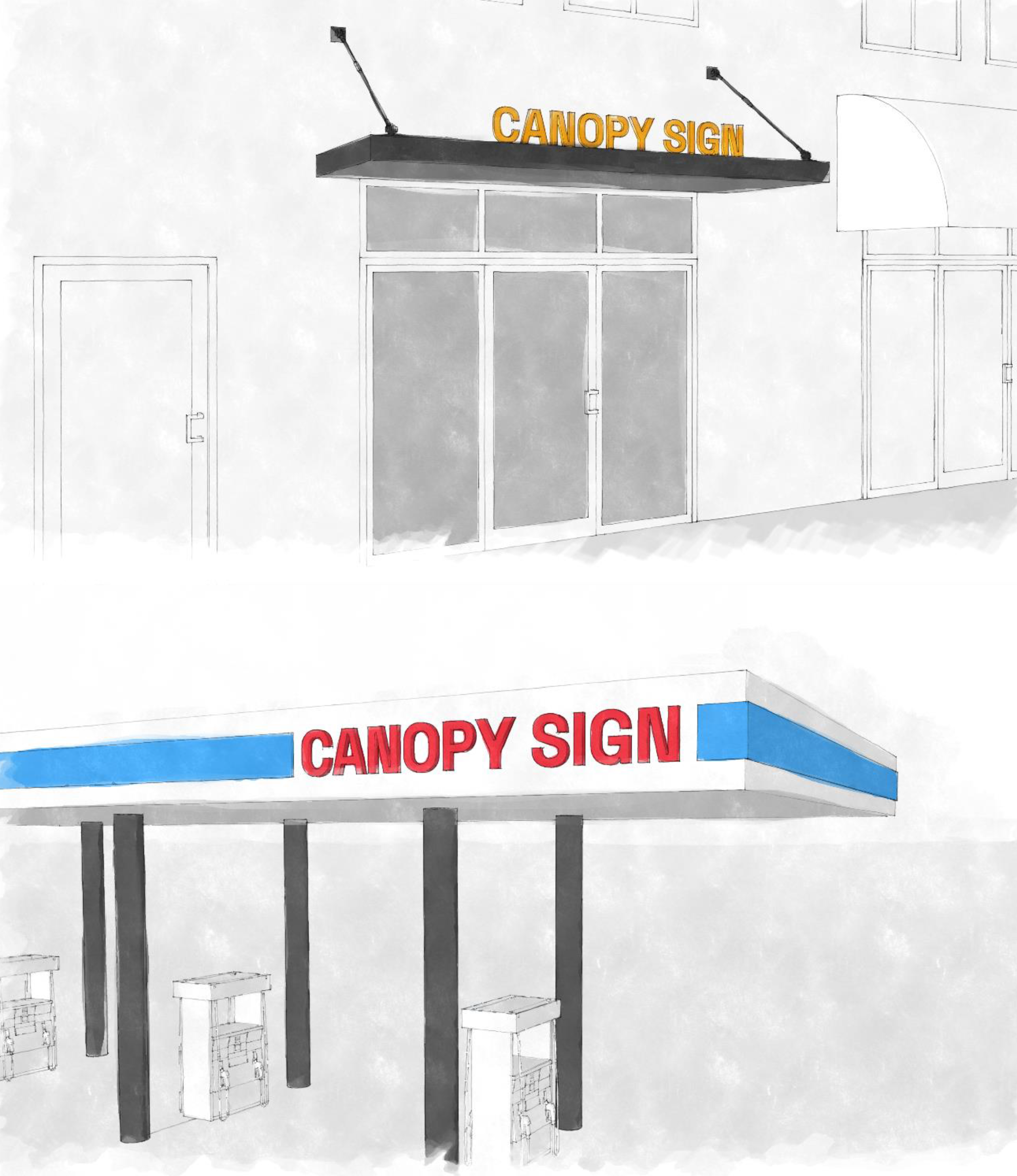Materials. Wall and free-standing signs shall be constructed of metal, glass, stone, concrete brick, wood or other material that the Planning Director finds have a substantially similar appearance of one of these materials and equal or greater durability. Awning and canopy signs may be printed on the valance of the awning or canopy.