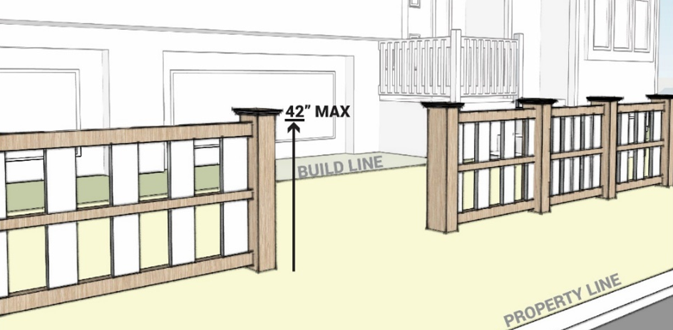 Fencing used to delineate outdoor seating or extended outdoor space of a building for the express use of that building, shall be a maximum of forty-two inches (42") tall and be comprised of durable materials that are complementary of the architecture.