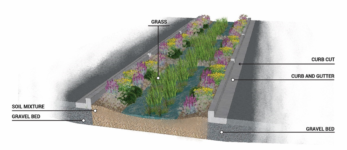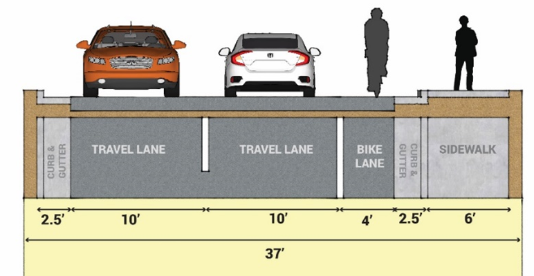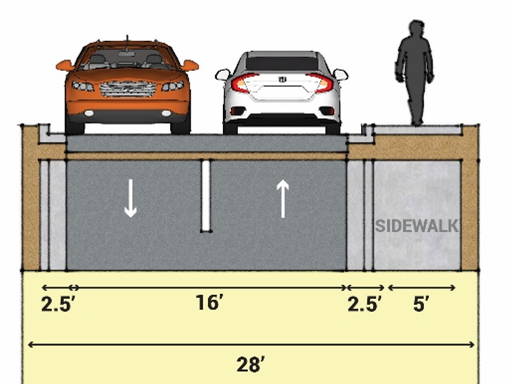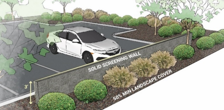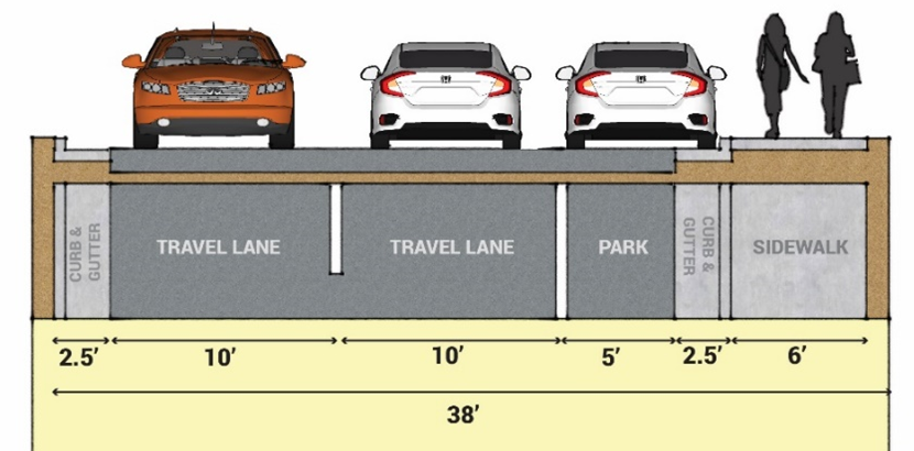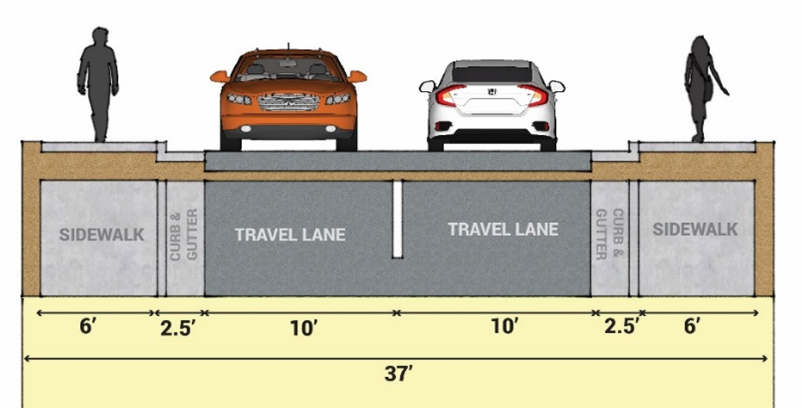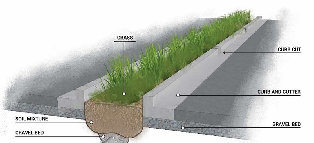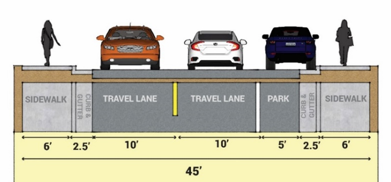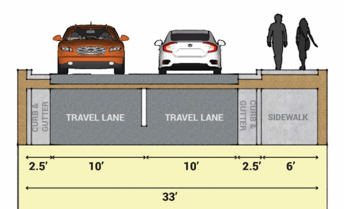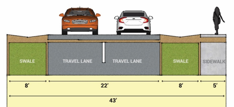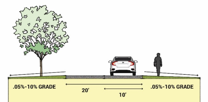 All paved surfaces shall incorporate a curb and gutter, concrete drain pan, or low impact development technique, per Section 18.03.8.10, along the creek side of the development to direct stormwater away from the Creek.