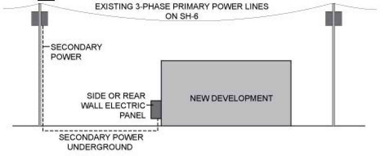 A minimum of 2,000 feet when the main structure is located 200-feet from the State Highway 288 right-of-way;