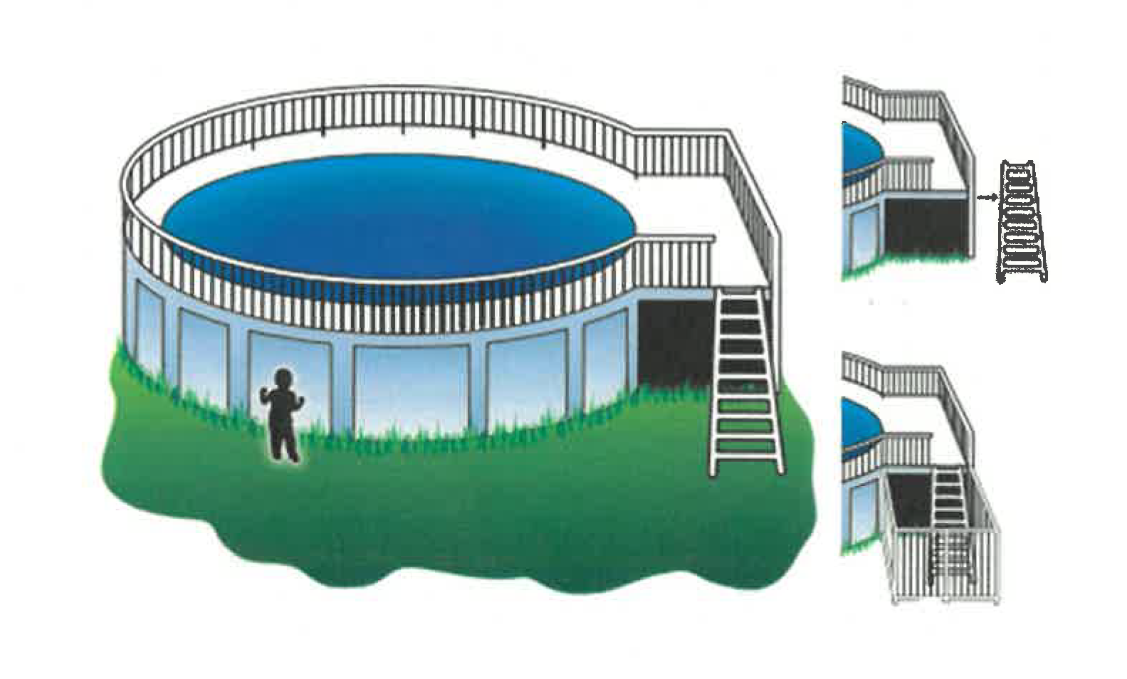 Above ground ladder capable of being secured, locked or removed to prevent access and secured when not in use.
