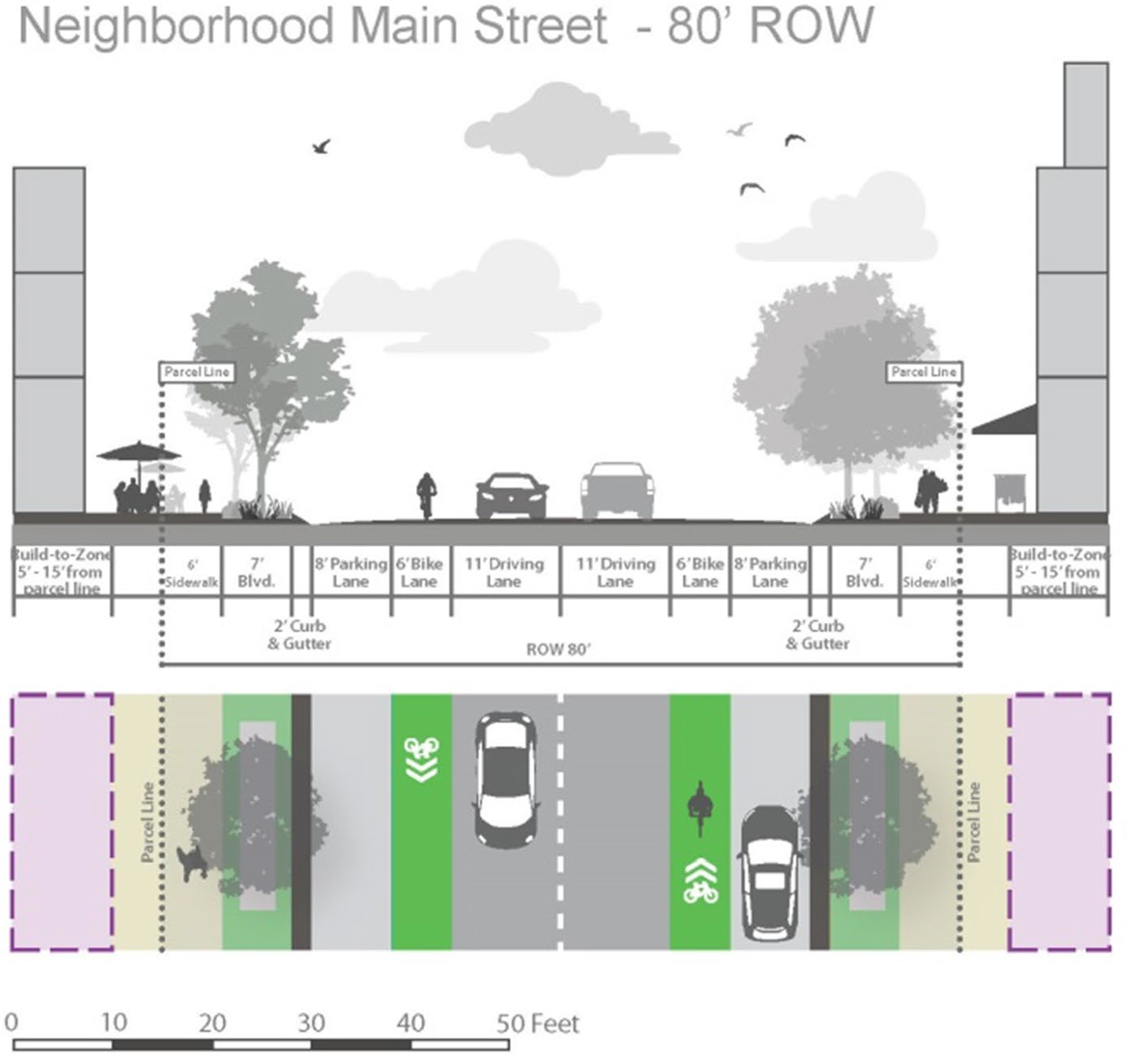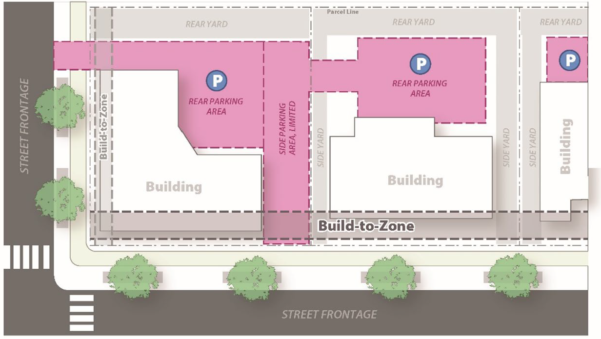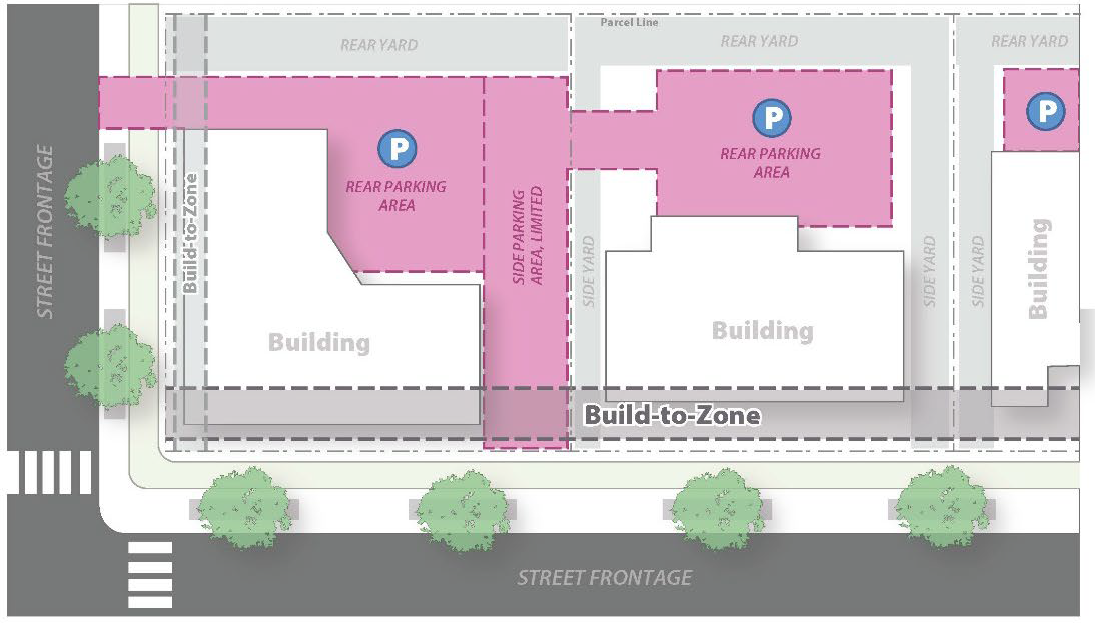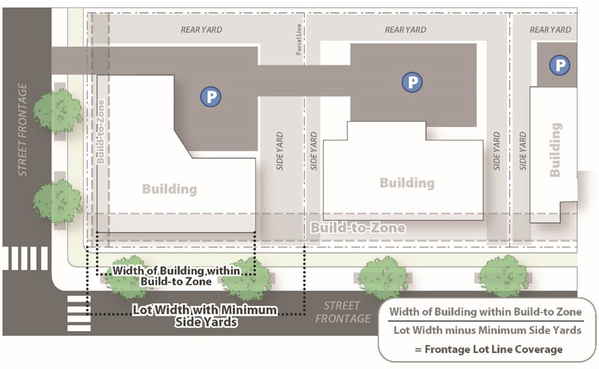Each corner lot or parcel shall have at least 80 feet of frontage on each of the public streets.
