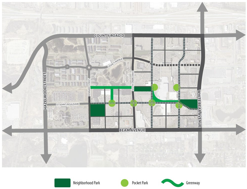The OSP open space and parks district is designed to be a public park and open space district. Public parks and open space may be owned or operated by Maplewood, Ramsey County or any other public body. All improvements within these districts must be consistent with the Maplewood Comprehensive Land Use Plan.