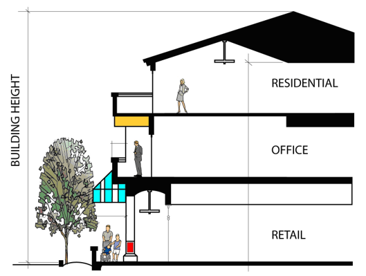 Each new residential and commercial development and any substantial redevelopment in the Old Town district is encouraged to be a mixed-use project with an affordable/workforce housing component in compliance with the residential density requirements of the zoning district in Table XXX; a single-use project (i.e., "stand alone" residential buildings) may be allowed only with a Conditional Use approval by the Council. Residential uses may be either vertically or horizontally integrated with the nonresidential uses, although vertical mixed-use is preferred.