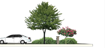 Streetscape treatments encompass the organization of outdoor space and all elements creating that space, including trees and vegetation, parking areas, hardscape structures such as fences, walls, furniture, and sidewalks, and the correct orientation and proper scale of building facades. Streetscape treatment shall be applied to the front setback, in particular those fronting a street or road.