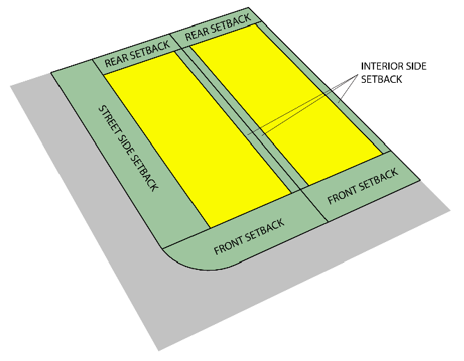 Rear Setbacks. Rear setbacks are measured from the rear lot line, except on corner lots, where the street side setback supersedes.