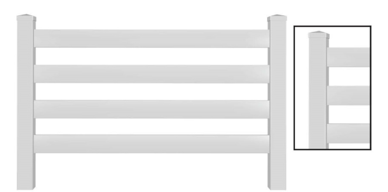 Split rail ranch style fence constructed out of wood or polyvinyl chloride (PVC) (see Figure 2).