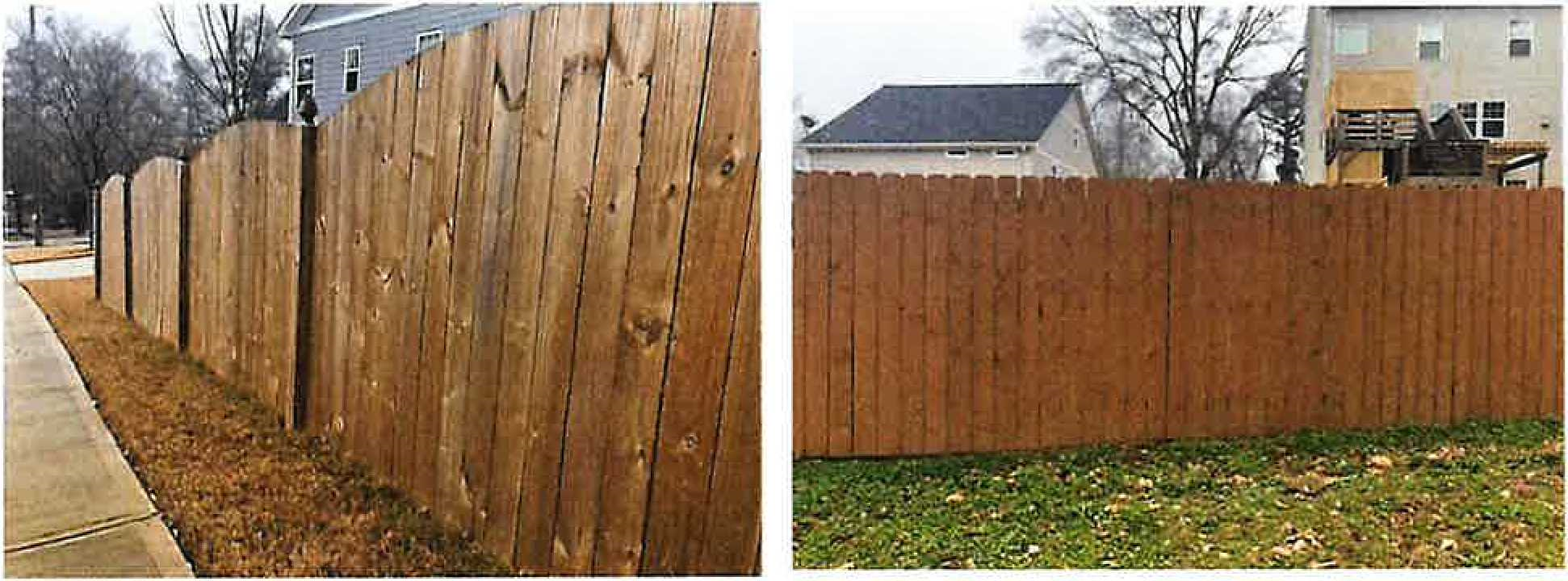 The finished side of a fence shall be to the exterior. For purposes of this section, the finished side of the fence shall be defined as the side of the fence that contains no visible support structures. Further, the following fences shall be considered as allowable exterior finishes: