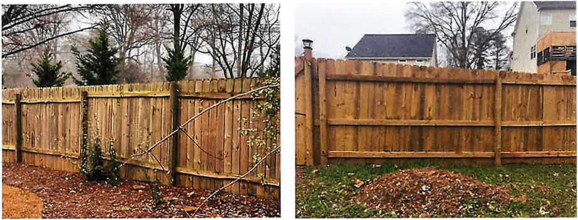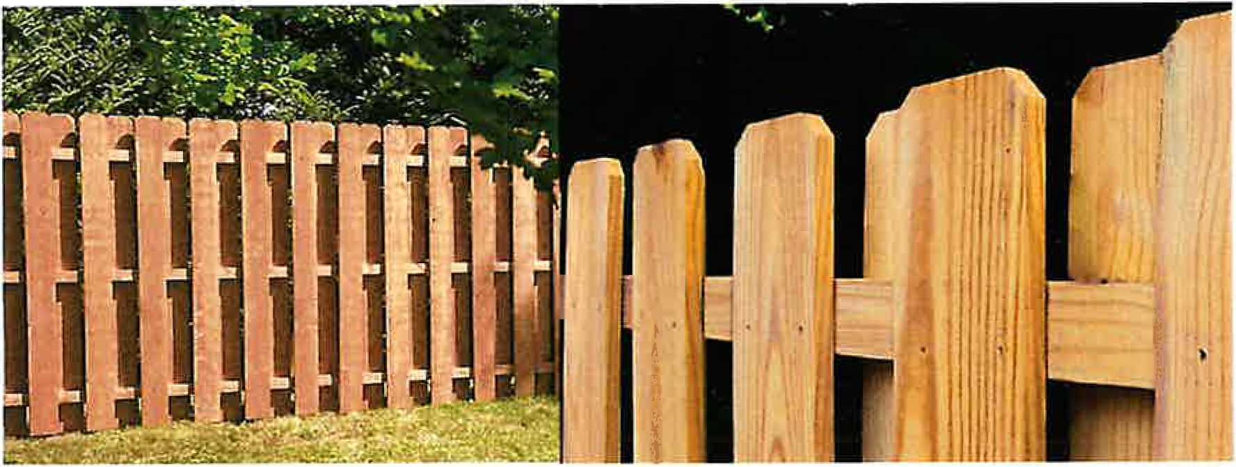 Dual sided fences with decorative elements on both sides including, but not limited to, trim, post caps, and x-cross beams (example shown below).