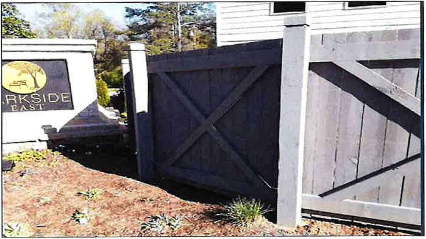 In all zoning districts, decorative or ornamental fences or walls, as required by this section, shall be constructed of durable materials such as wood, brick, stone, or wrought iron, or split rail; but shall not be constructed of exposed concrete block, or used or discarded material in disrepair, including, but not limited to, pallets, tree trunks, trash, tires, junk or other similar items.