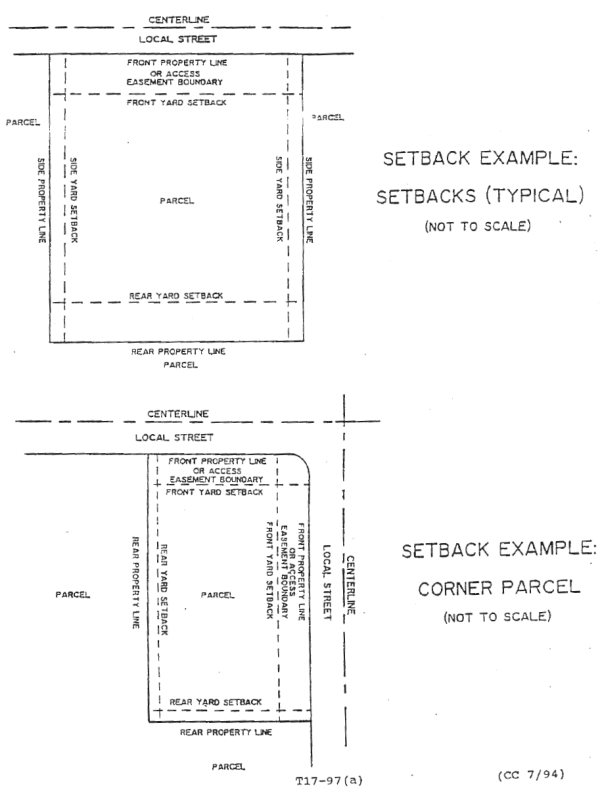 Unless otherwise prescribed, the following setback standards shall apply to all buildings with roof area exceeding one hundred twenty (120) square feet, all structures except as permitted by subsection D, and all uses set forth in subsection E. Additions to existing buildings, structures, or uses set forth in subsection E, where such building, structure, or use encroaches into a setback area, shall not be closer to the property boundary than one-half (1/2) the width of the setback requirement or closer to the property boundary than any part of the existing building, structure, or use, whichever constitutes the lesser encroachment.