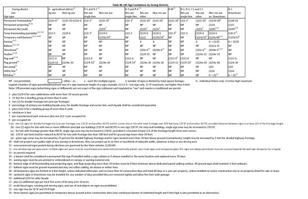 The Zoning District specific sign requirements are listed in Table 86-185.