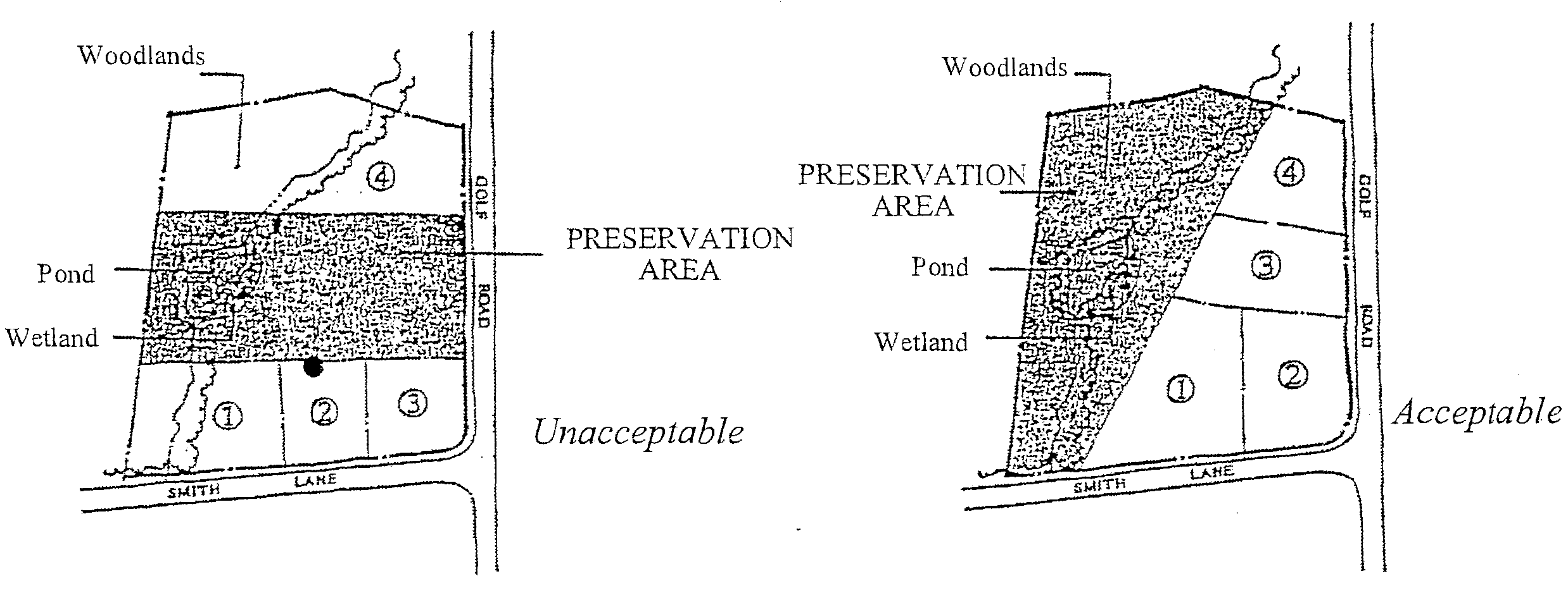 Preservation Areas should be designed as one large block of land with logical, straightforward boundaries.