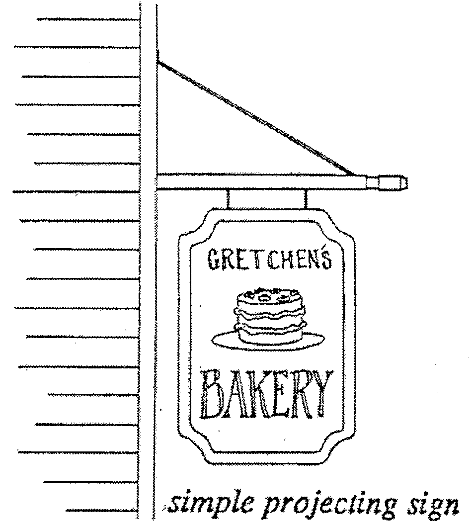 Projecting WALL SIGN. Projecting walls SIGNS are permitted within the District provided that the lower edge of the SIGN is a minimum of ten (10) feet above grade, but does not extend more than six (6) feet from the BUILDING wall and does not extend higher than the first floor or fifteen (15) feet, whichever is less. In no instance shall a PROJECTING SIGN be higher than the lowest edge of the roof-line. The maximum SIGN area shall not exceed ten (10) square feet.